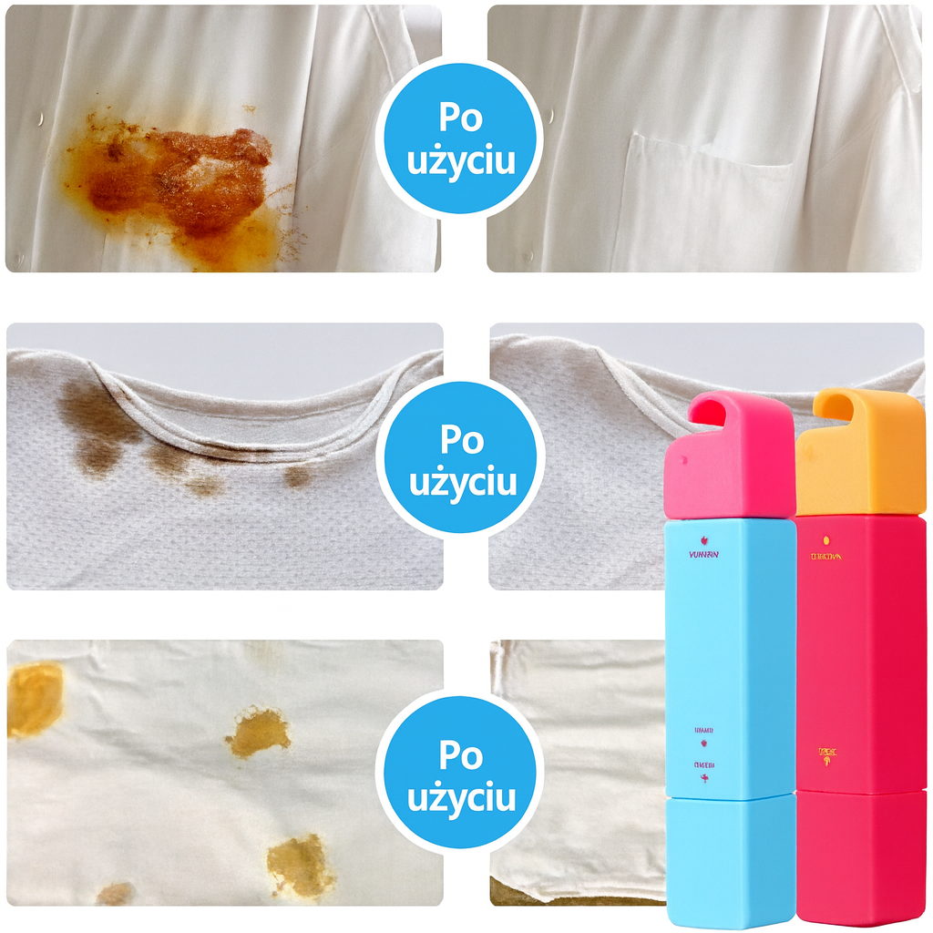 Natychmiastowe usuwanie plam — bez wody, bez prania.